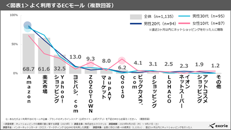 Amazonの利用がトップ、ECモールと企業オンラインストアの使い分けが鮮明