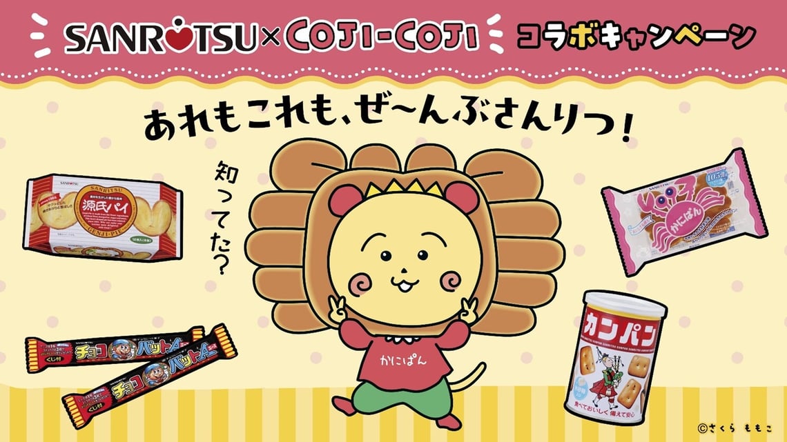 本キャンペーンでは三立製菓の全商品と、さくらももこ原作の「コジコジ」とのコラボレーションが実現しました。三立製菓のベストセラー「かにぱん」や「源氏パイ」とともに描かれる特別描き下ろしのコジコジも登場!コジコジのかわいらしい世界を存分にお楽しみいただけます。